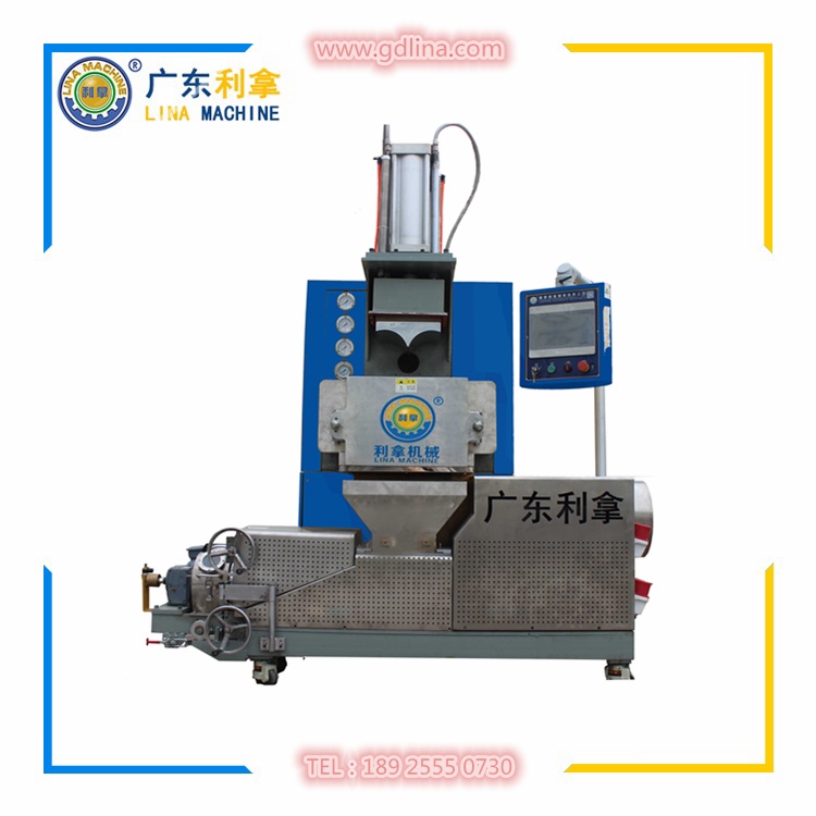 3、改性造粒機(jī):為造粒主機(jī),其功能是將密煉機(jī)混煉好以后的膠料經(jīng)過二次分散推送至切粒模頭切粒,因在推送過程中需要保證膠料的溫度所以一般設(shè)有五個(gè)溫度控制區(qū),用以調(diào)節(jié)膠料溫度配合切粒機(jī)切粒成型;